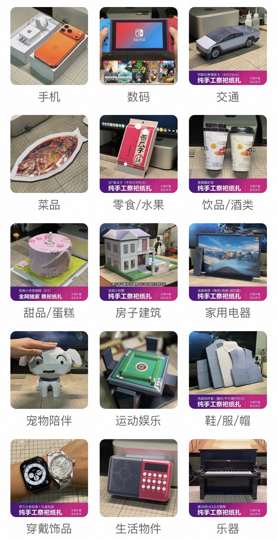 临近清明,思念如潮,祭奠用品市场也随之升温。有网友注意到,在平板、手机等“赛博纸扎”之外,今年还上新了“AI全家桶”纸扎,包括了OpenClaw、ChatGPT等头部大模型。从过去的天地元宝、豪车别墅,到如今的算力、大模型……AI的风也吹到了祭奠领域。